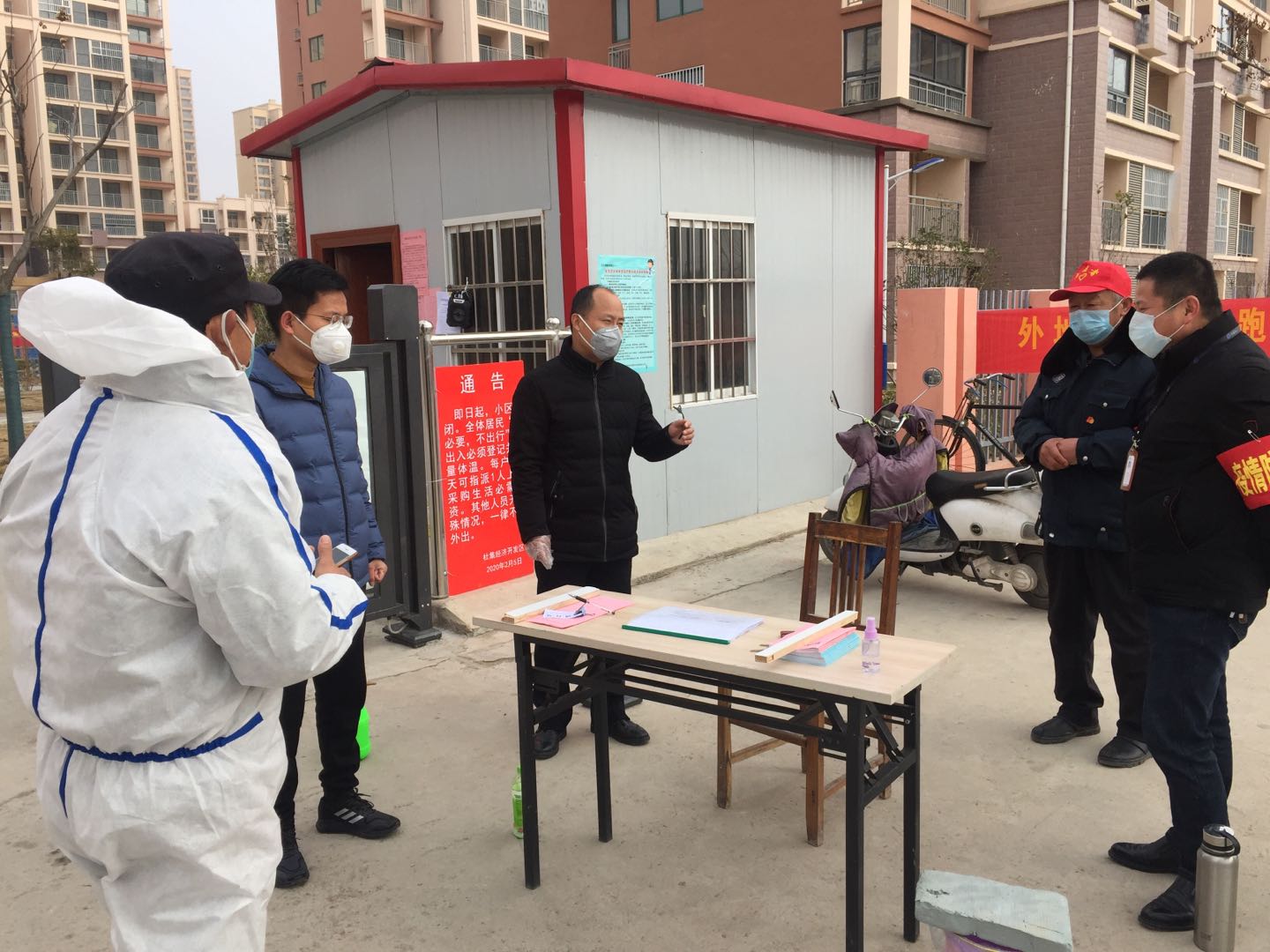王俊杰先后來到福興雅苑項目工地、趙莊安置房、岱河花園、2012公租房、圣莊安置房和東湖家園,每到一處,王俊杰都與相關人員悉心進行交流,仔細詢問封閉管理、人員管理、物資儲備、內部消毒等相關情況。