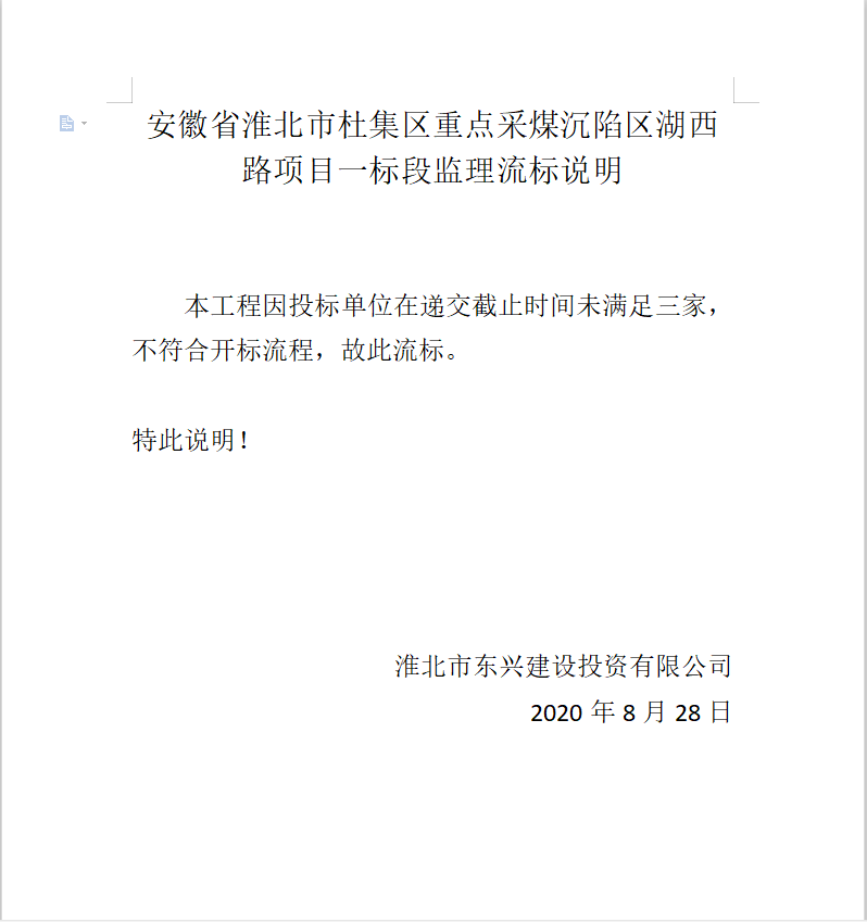 安徽省淮北市杜集區重點采煤沉陷區湖西路項目一標段監理投標邀請(招標公告)